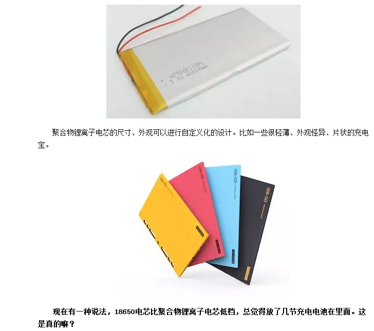 现在的充电宝电芯一般分为18650电芯和聚合物锂离子电芯。