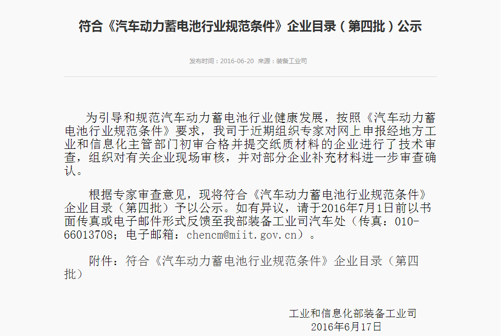 符合《汽车动力蓄电池行业规范条件》企业目录(第四批)